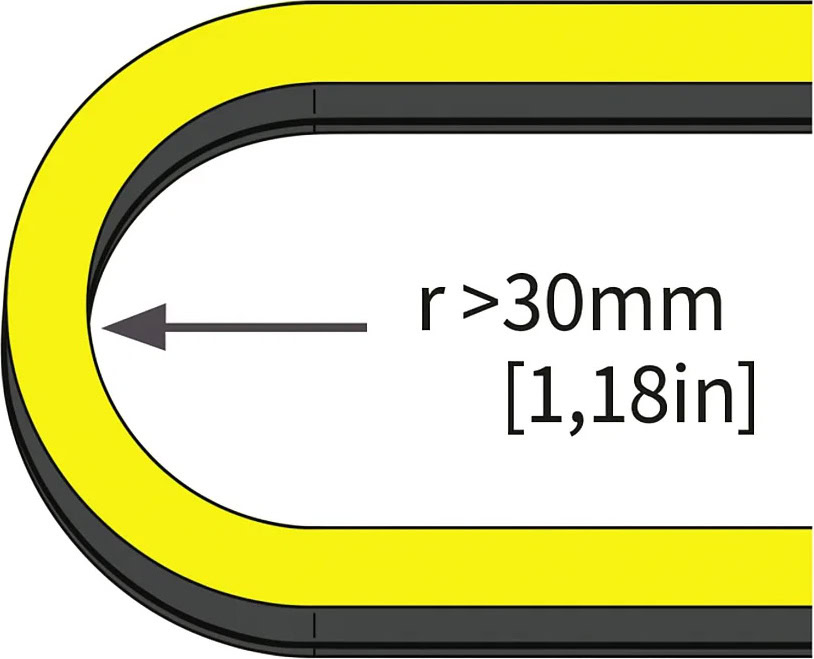 reduced bending radius. Available in side bending version.