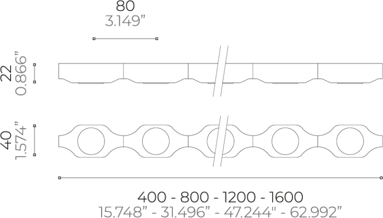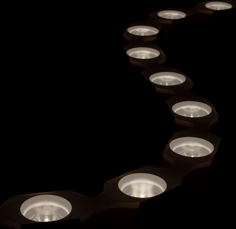 Professional surface lighting systems with a flexible and minimal design, featuring high-efficiency LEDs with different optics available. Suitable for indoor and outdoor environments. Made entirely of UV-resistant nanopolymer resin with a glass-like finish, which provides protection to the lens to prevent distortions in light emission.