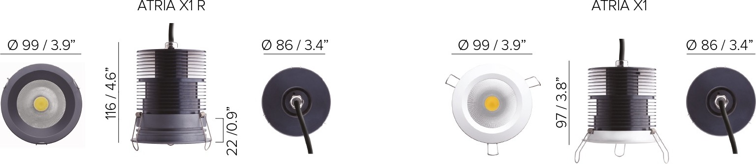 • Available in two models: ATRIA X1 R with recessed optics – ATRIA X1 with flush optics