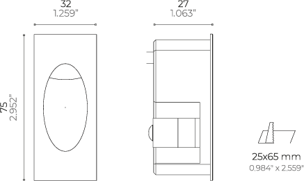 Recessed lighting fixture with asymmetrical light beam for flood or step lighting. Suitable for indoor and outdoor applications. Available in three shapes: rectangular, square and circular. Made of painted aluminum, zinc alloy and UV-resistant nanopolymer resin that ensures complete waterproofness.