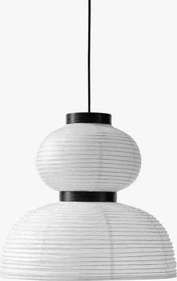 Material: Rice paper shade; black lacquered oak veneer brackets; fabric covered cord with PVC canopy.