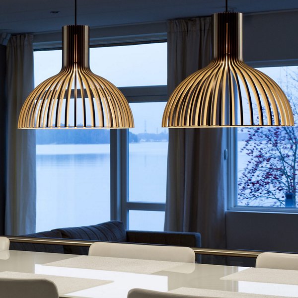 Inviting at any time of day. Gather around the serene handcrafted composition of the Victo 4250 Pendant from Secto Design. It’s a dashing minimalist piece drawing from Finnish designer Seppo Koho’s Scandinavian roots. Koho brings to the piece a refreshing appreciation for craftsmanship, beginning each design with plenty of sketches…