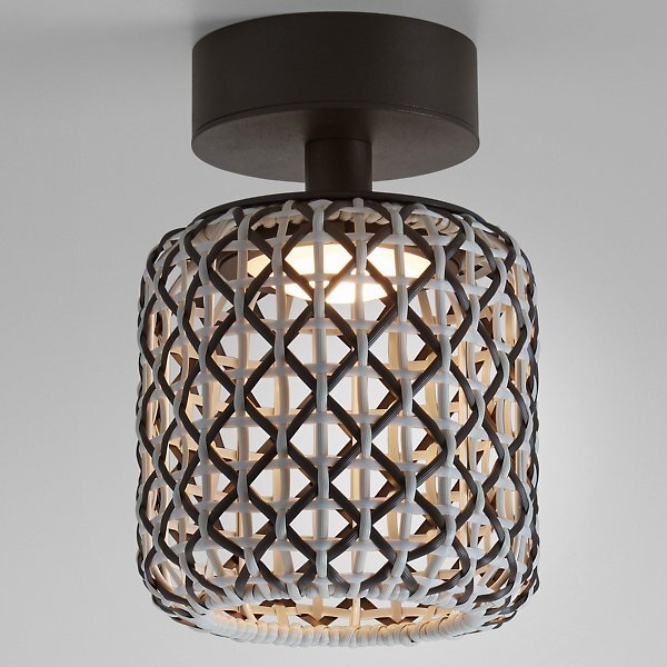 Liven up your exterior design. The Nans Outdoor LED Flushmount by Bover reveals true craftmanship among its handwoven wicker lampshade. A round base sits flush against the ceiling, connected to a globe that diffuses downward light through the intricate wicker material. By combining different colors and styles of weaving, this…