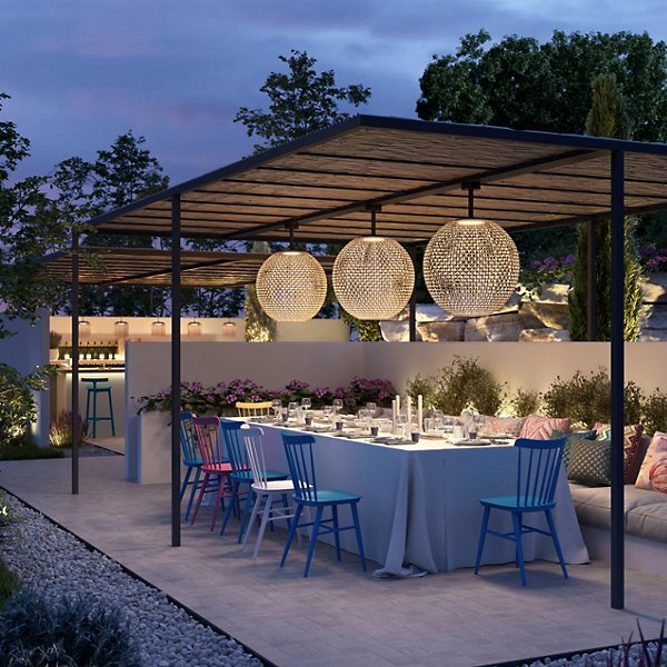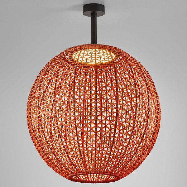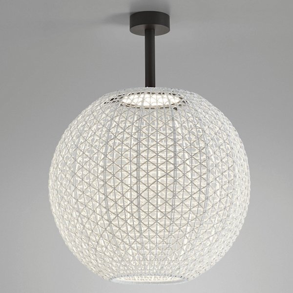 Do you feel at home in the Mediterranean? Then you will love the Nans Outdoor LED Sphere Flushmount by Bover. This light fixture features a round base that sits snug against the ceiling, holding tightly to a handwoven wicker sphere shade at the end of a tubular connecting rod. Rich…