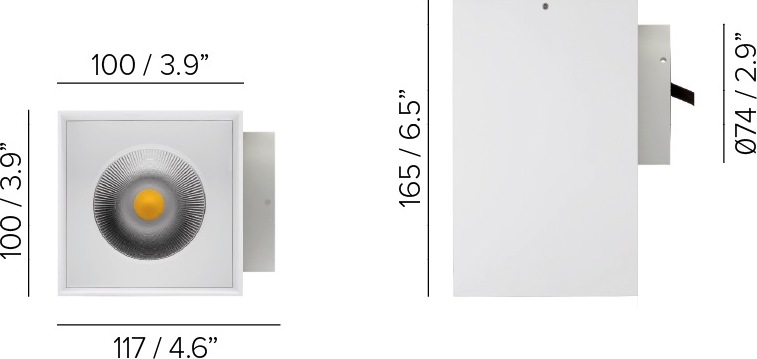 Architectural square wall mounted luminaire with an extremely neat and minimal design