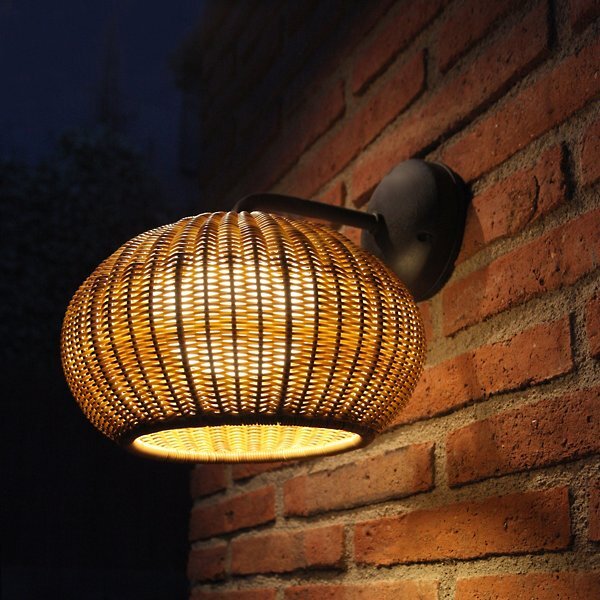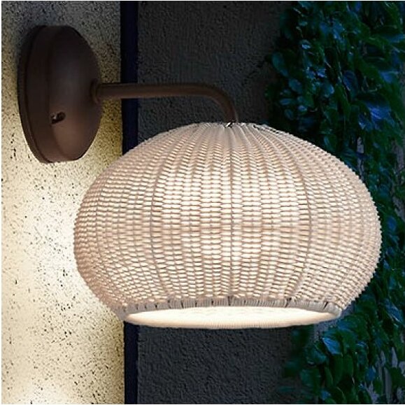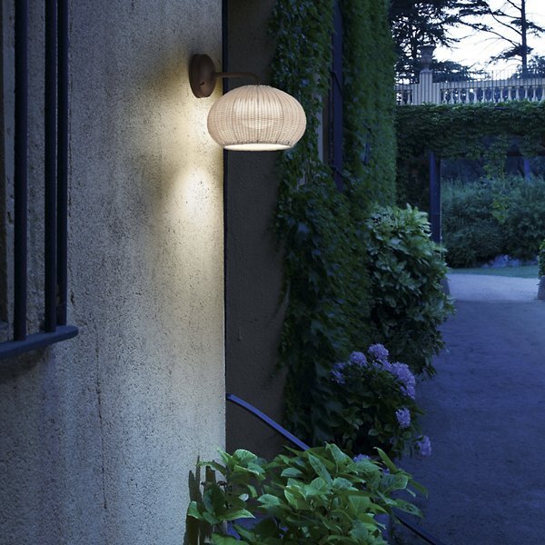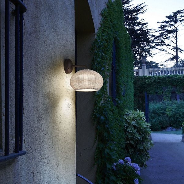 Optimized to withstand the elements, the Bover Garota 01 Outdoor LED Sconce fully protects a bright light source with a woven synthetic shade and polyethylene diffuser. The material is hand-wrapped with a dominant vertical pattern, resembling a wicker shade that creates surrounding ambient and full down light through the open…