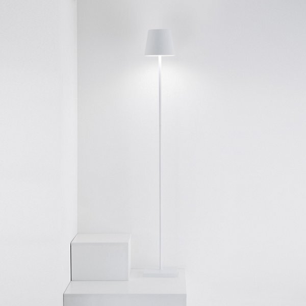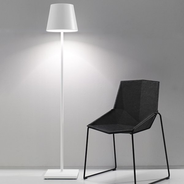 Simple yet no less significant, the Poldina Pro Rechargeable LED Adjustable Floor Lamp from Zafferano America expresses modernity with its clean lines and soft, graceful angles. Made of aluminum, the square base provides a sturdy foundation for the rising, lengthy body that ends with a conical shade. An integrated LED…