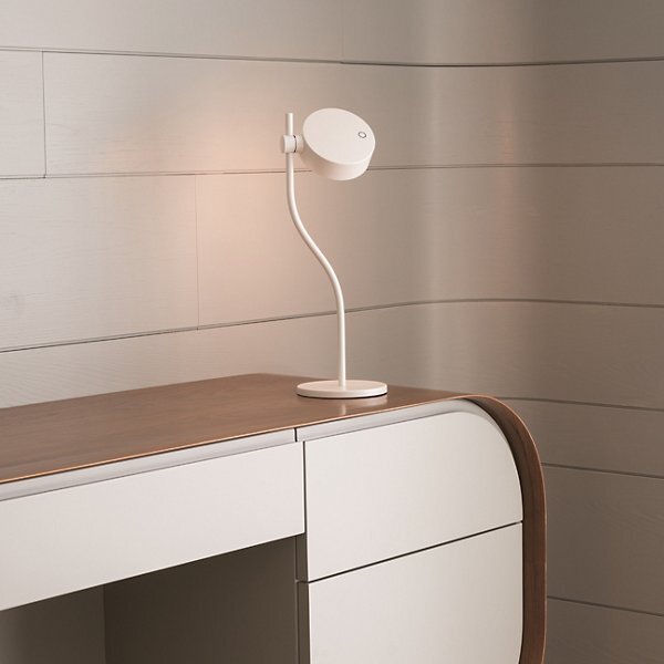 Add adjustable illumination to your interior surfaces with the Super O LED Table Lamp from Zafferano America. A 2024 design by Federico De Majo, this slender, simple design places a pivoting LED lamp inside die cast aluminum head at the end of a curving stem. The LED lamp detaches to…