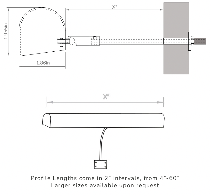 The fixture features a 1.86″ x 1.955″ profile with a length that ranges from 4″-60″. Longer lengths are available upon request.