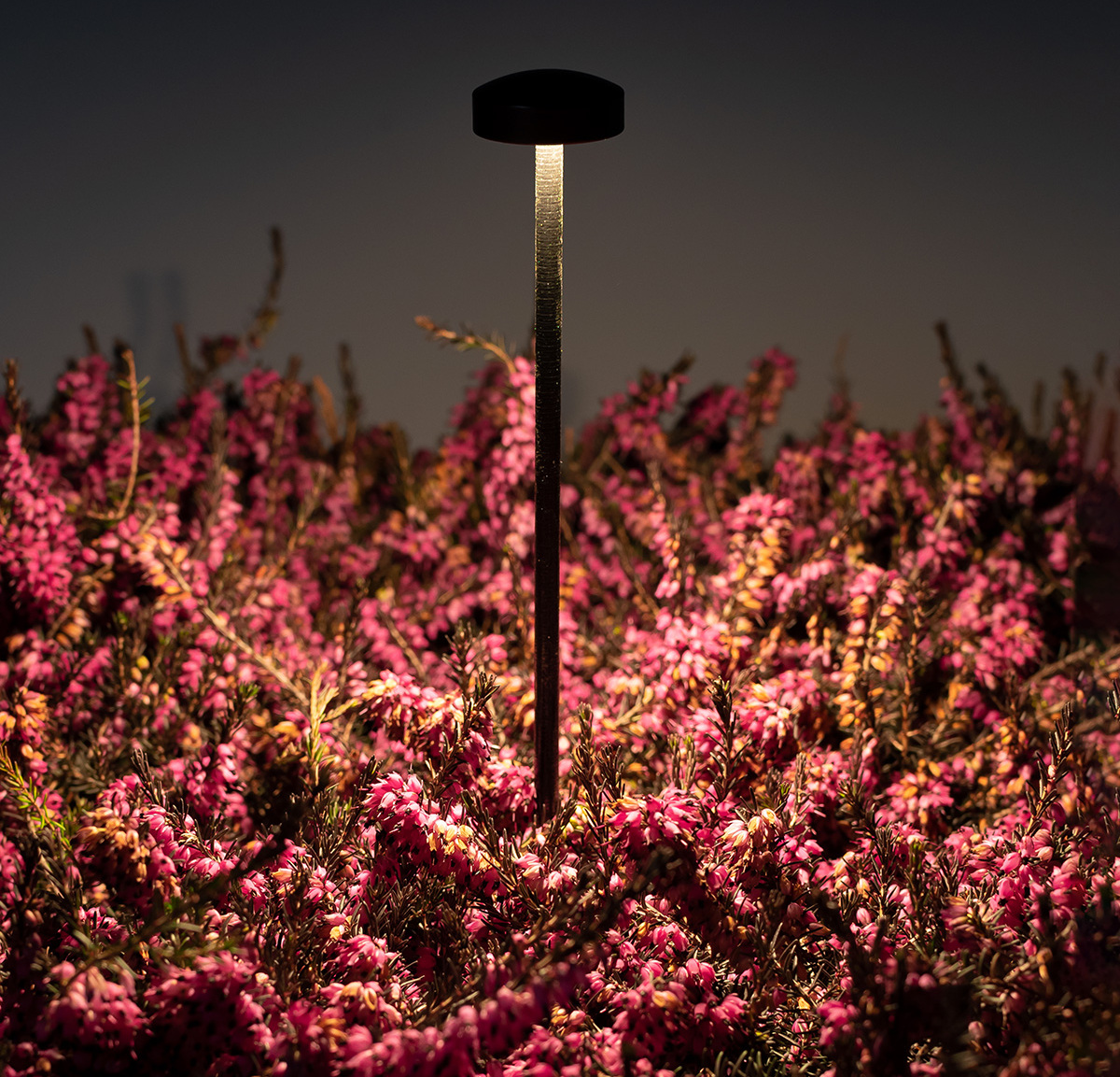 • Featuring a minimal design and hidden feeding cable, the luminaire is available in two heights options: 25″, 40.7″