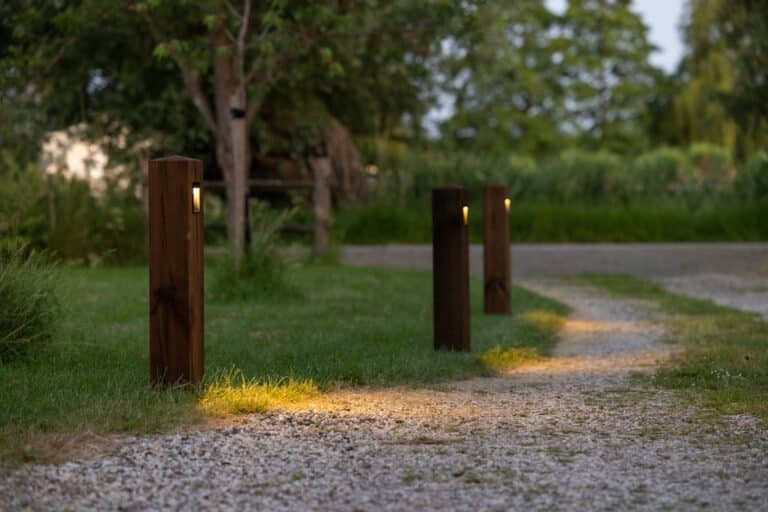 Light source: TBL path light module Available light colors: 2,700K (extra warm white), 4,000K (cool white) and amber (593nm) Wood types: Accoya, douglas (on footrest only), oak or chestnut Fixture color: Gray RAL 7016