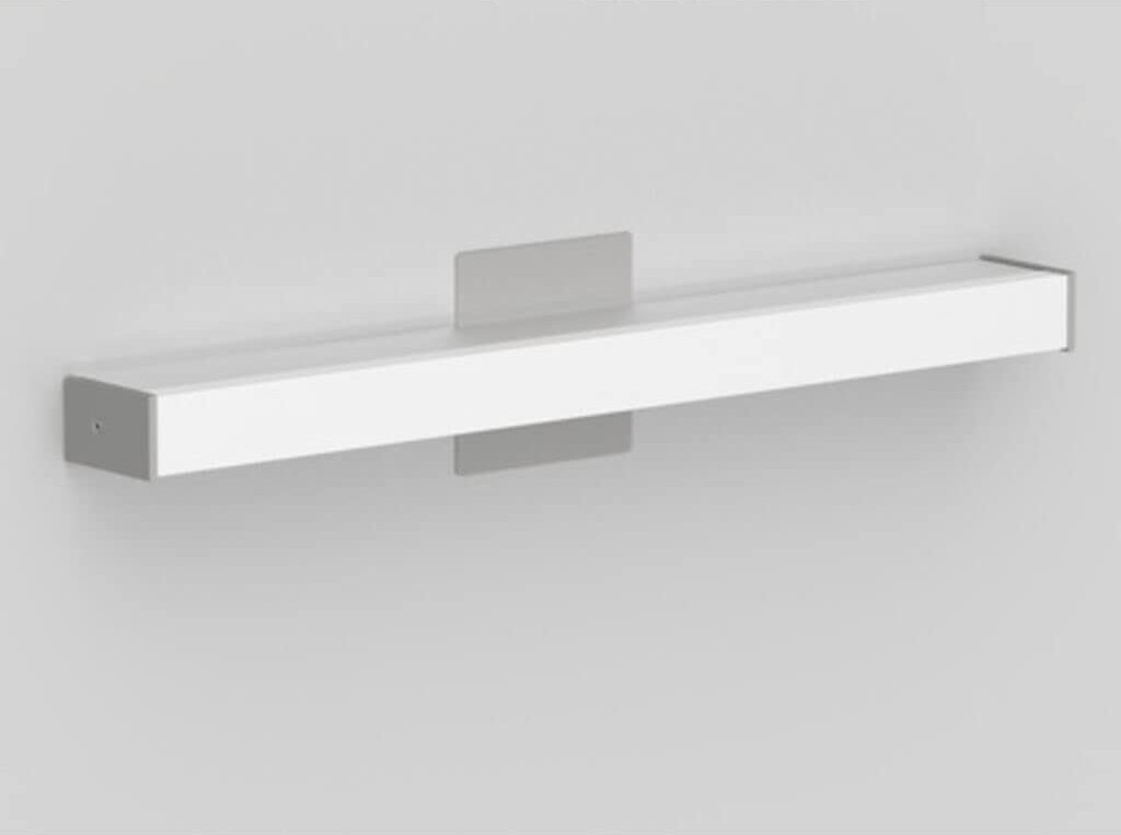 Wall or ceiling mounted luminaire for indirect lighting with a square or rounded extruded aluminum, clear-coated finish. End caps powder-coated matte grey. Diffuser in extruded acrylic diffuser with opaque white finish. Canopy cover-plate matched to end caps supplied for junction box mounting or removable for pigtail mounting.
