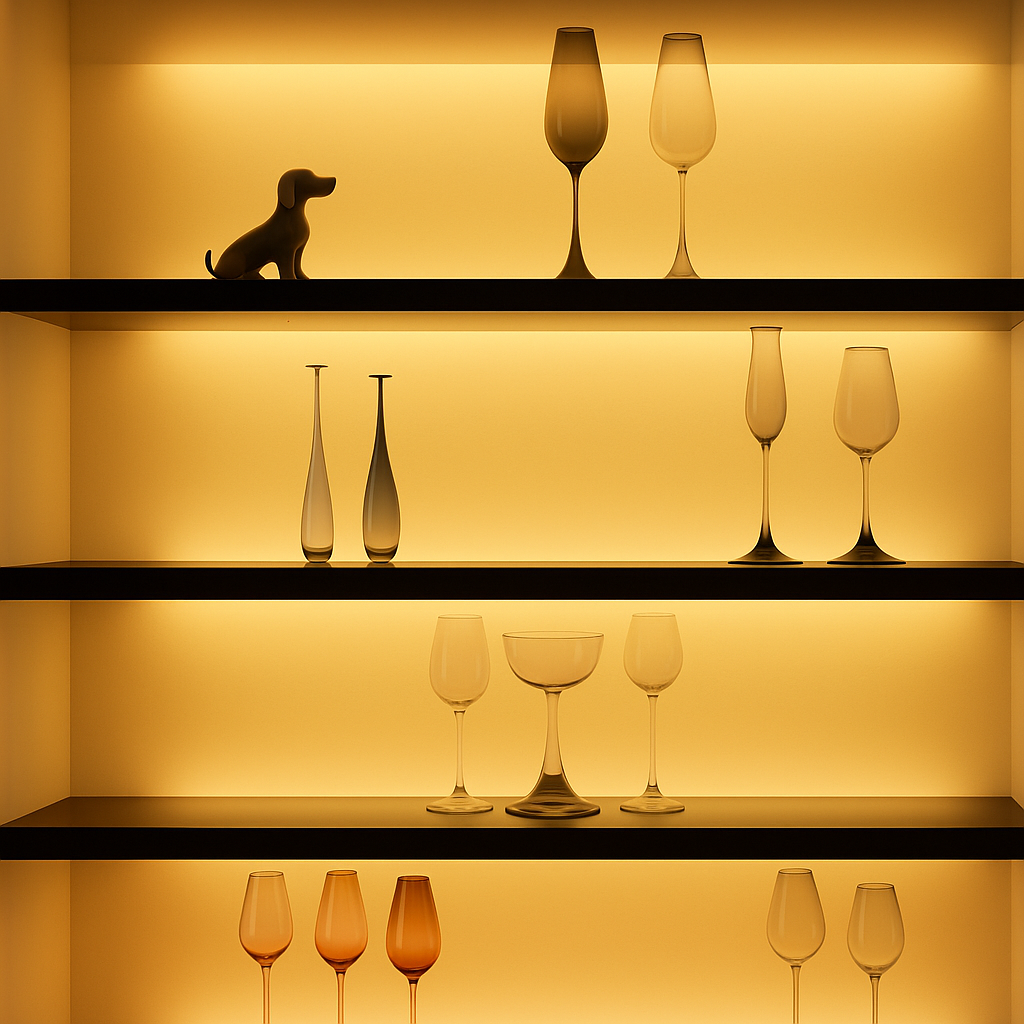 This unique super flexible, double-sided, back-of-shelf linear lighting will revolutionize how you conceptualize your shelf lighting designs.